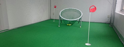 高性能弾道測定器 「SkyTrak」 SkyTrakは高機能かつ測定値の正確性を保つ。 「ボールスピード」「打出角度」「バックスピン」 飛びの3大要素から導き出される、理想の弾道を確認して頂けます。 室内アプーローチ パター練習場 当練習場には、ゴルフ場を再現した花道がございますので、ぜひ、何度も何度も練習していただき、花道からミスをしない技術を身につけていただければと思います! 本格的な 室内バンカー練習場 目玉からのショットの打ち方と脱出のコツを体感していただくことが可能でございます。 バンカーからのミスショットを少しでも減らしスコアアップできるよう、ぜひお役立て下さい